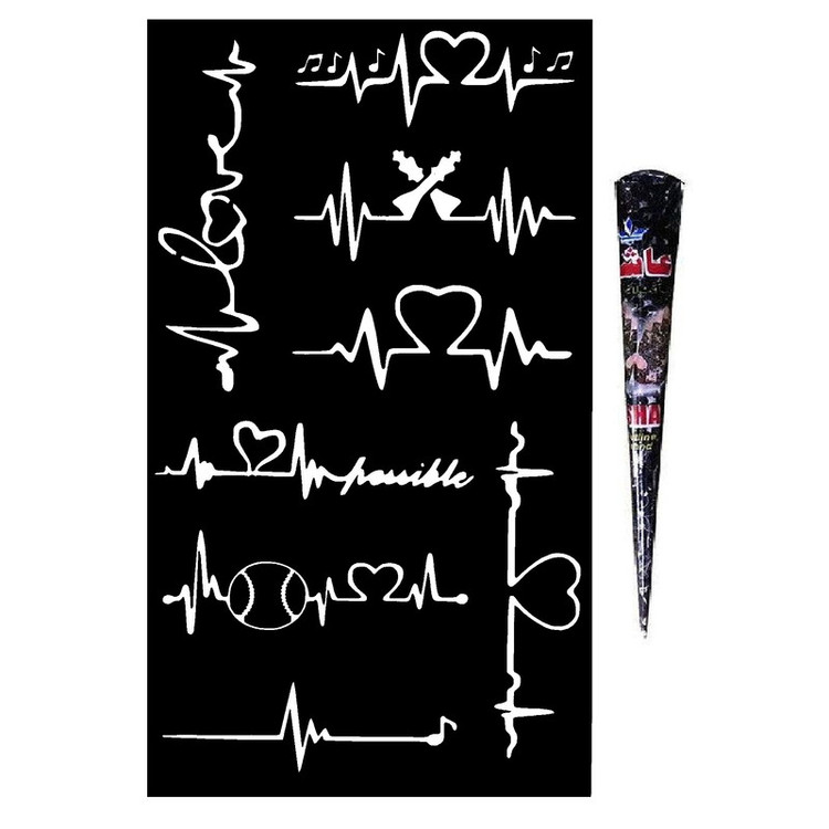 حنا طراحی و شابلون تتو موقت مدل ضربان M3 مجموعه 9 عددی