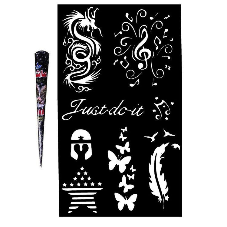 حنا طراحی و شابلون تتو موقت مدل S07 مجموعه 9 عددی