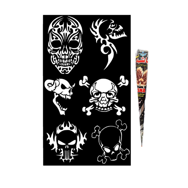حنا طراحی و شابلون تتو مدل اسکلت M7 مجموعه 7 عددی