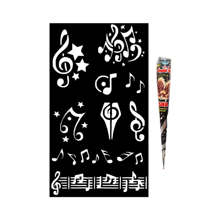 حنا طراحی و شابلون تتو مدل نت موسیقی M11 مجموعه 10 عددی