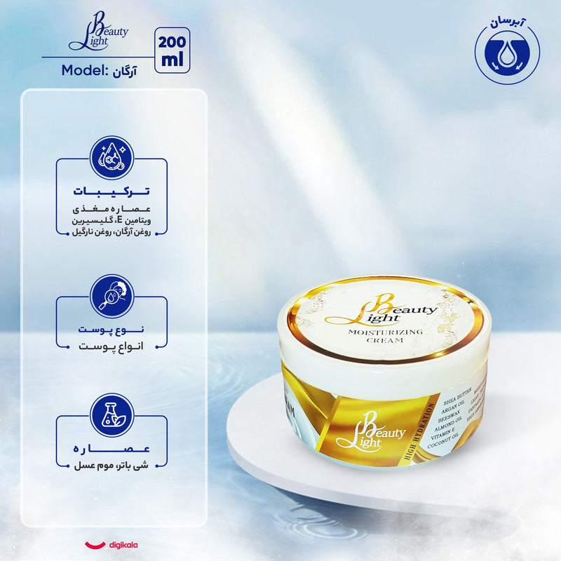 کرم آبرسان و مرطوبکننده لایت بیوتی مدل آرگان شیباتر حجم 200 میلیلیتر